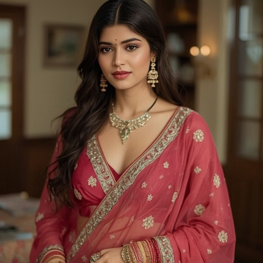चुंबन शुरू में बहुत कोमल था, जैसे दोनों सालों की दबी हुई भावनाओं को पहले-पहल छू रहे हों। मीरा के होंठ नरम और गर्म थे, थोड़े कांपते हुए। राहुल ने धीरे से होंठों को चूसा, जीभ से हल्का सा छुआ। मीरा ने पहले हल्का विरोध किया, हाथों से राहुल के सीने को धकेला, लेकिन उसका शरीर उसकी इच्छा के खिलाफ काम कर रहा था। जल्दी ही वह खुद ही होंठों को और गहराई से दबाने लगी। दोनों की साँसें तेज हो गईं, रसोई में चूल्हे की आँच की गर्मी के साथ उनके शरीरों की गर्मी भी बढ़ती जा रही थी। मीरा की साड़ी का पल्लू अब पूरी तरह सरक चुका था, और उसके भारी तरबूज राहुल के सीने से दबकर एक मीठी सी पीड़ा दे रहे थे। पसीने की बूंदें मीरा की गर्दन से नीचे बह रही थीं, जो राहुल की जीभ को और लुभा रही थीं।
